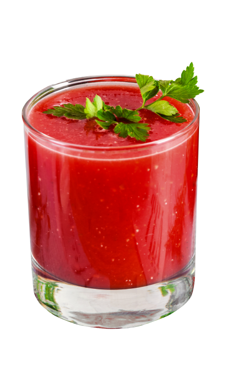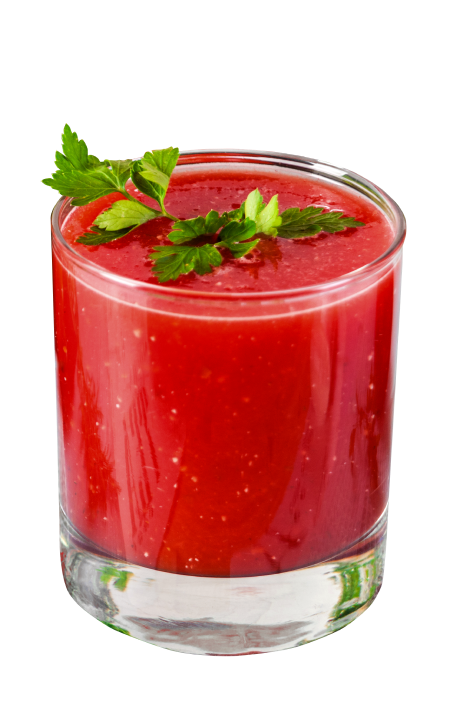 В состав сока прямого отжима TOP TOMATO входят только свежие томаты, соль, пряности и семена укропа. Полностью без использования воды